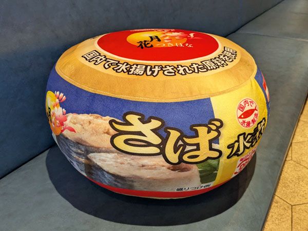 座席にはさば缶のクッションが置かれていて、コラボを盛り上げています!