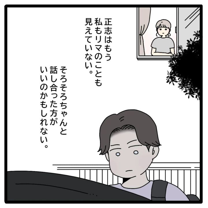 今の正志には、私のこともリマのことも見えていません。以前までの優しくて家族想いだった彼は消えました。私は、家の外で聡子さんの元に向かう準備をする正志を眺めながら、そろそろちゃんと離婚について話し合った方がいいのかもしれないと思いました。