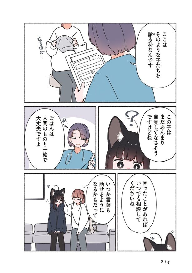 突然、飼い猫が人間の姿になってしまった! どうしていいかわからず動物病院へ連れていく/うちの黒猫、おんなのこ②