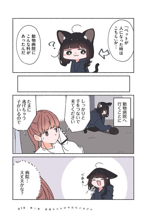 3. 突然、飼い猫が人間の姿になってしまった! どうしていいかわからず動物病院へ連れていく/うちの黒猫、おんなのこ②