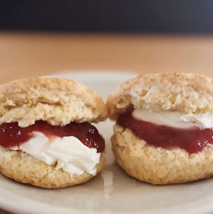私は今まで無意識にデヴォン式で食べていたけど急に食べ比べしたくなりスコーンを焼いて試してみた。個人的にはクリームが先、ジャムが後のデヴォン式が安定して食べやすくて、やはり好きなよう。ビジュアルはどちらもかわいい😍あっ、でもデヴォンにピントがきてるかも?😆