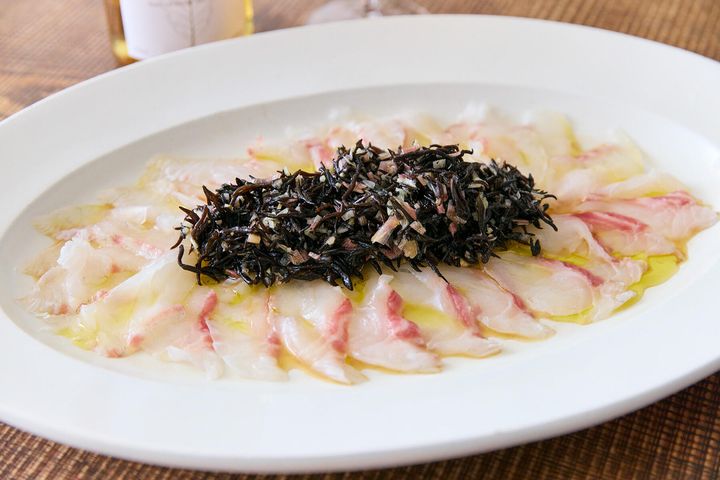 ウイスキーに合う料理を提案してくださいという注文に対して、家庭料理の延長線上でさまざまな料理を考案してきた野口真紀さんが出した答えの一つが、鯛のカルパッチョだ。そこにはどんな狙いがあるのだろう。