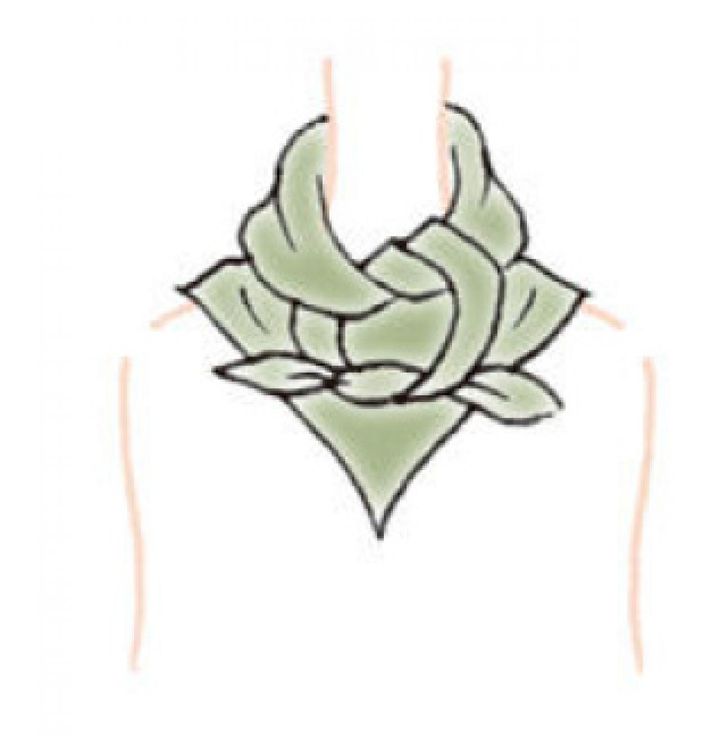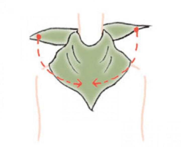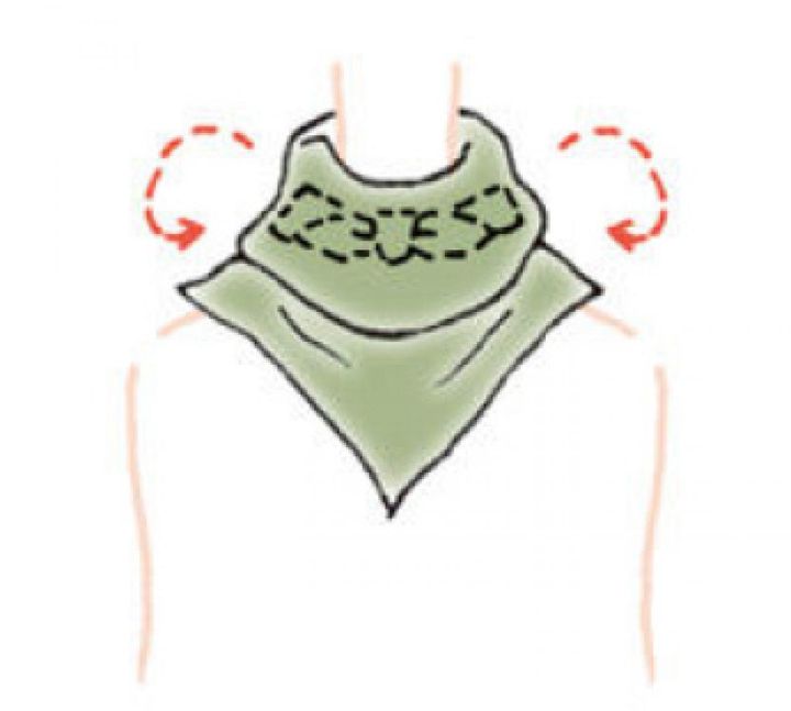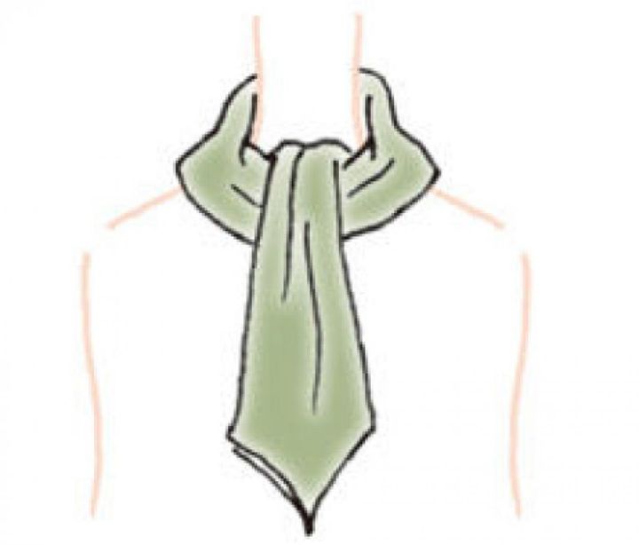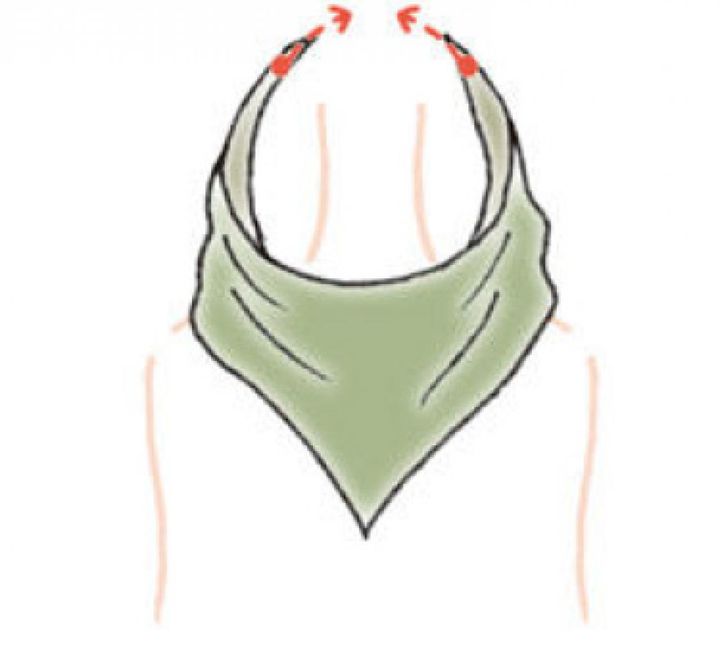 【1】三角折り(※)にしたスカーフを正面から首にあてる。