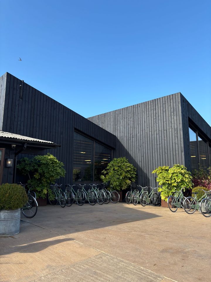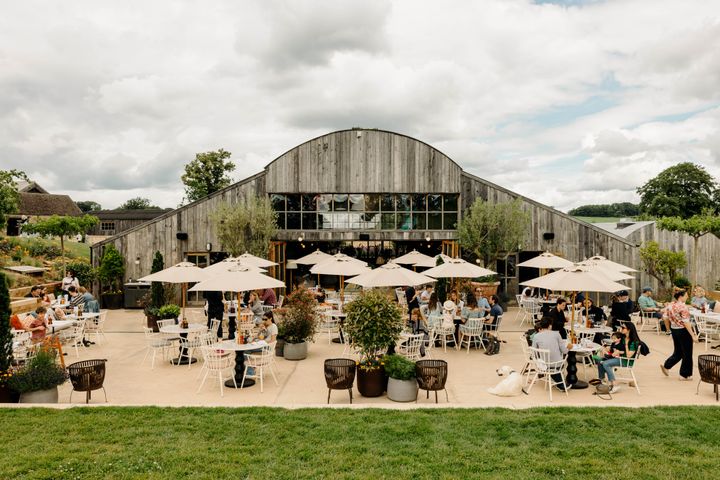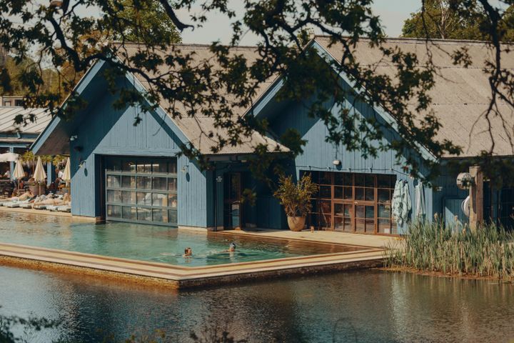 私が訪れたのはイギリス、コッツウォルズにある「ソーホーファームハウス(Soho Farm House)」。ロンドンから車で約90分、100エーカーにおよぶ田園地帯にあります。敷地内には湖畔側にゲスト用のキャビン40棟、農場側にハット20棟をはじめとするゲストルーム、多彩なレストラン、ジム、スパ、プール、数々のショップ、そして農場、牛や馬の牧舎……と、ここら一帯でひとつの町なのか?と思う規模感。