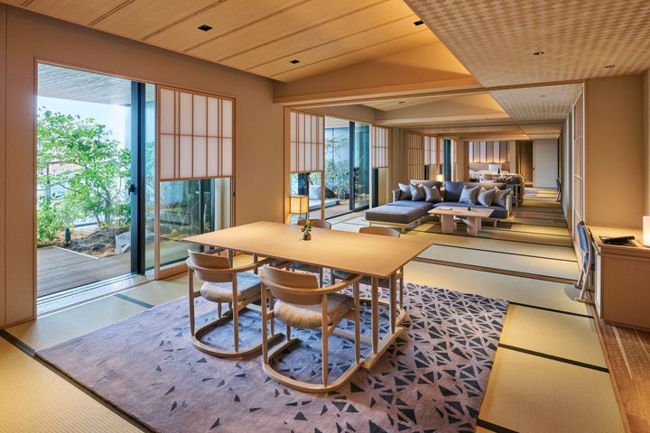 客室は、「富士と対話をするような余白の時間を過ごしてもらいたい」という思いから42室に限定。脈々と受け継がれる世界基準のホスピタリティと、日本の伝統的なおもてなし精神を伝えるオールスイートとなっている。3棟の離れ貴賓室もあり、1棟にはプライベートプールを設けた贅沢な造りが魅力。