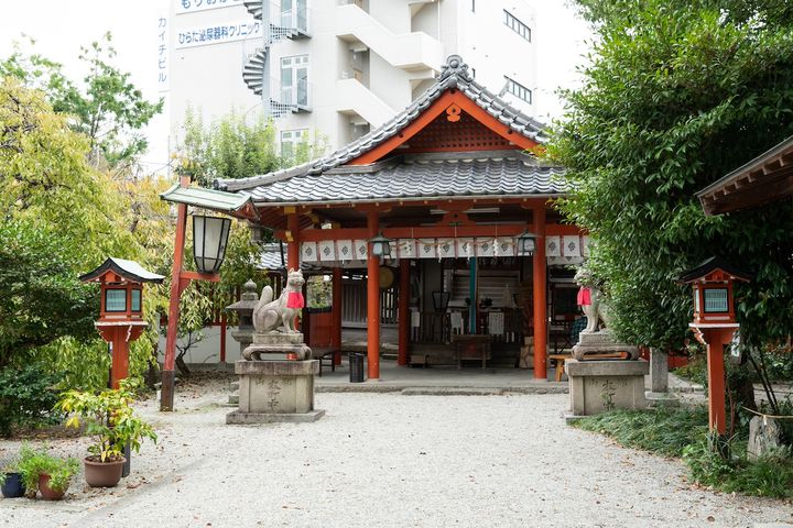 源義経を何度も助けたと伝わり、歌舞伎「義経千本桜」にも登場する「源九郎狐」を祀る神社。豊臣秀長は郡山城に入る際、この神を鎮守として城内に祀ったと伝えられ、享保4年(1719)に現在の場所に遷座しました。