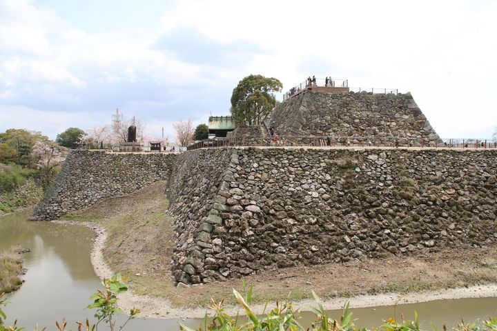 筒井順慶の築城に始まり、天正13年(1585)に豊臣秀長が入城。大改修を行い、100万石の本拠としました。当時の建物は残っていませんが、石垣や濠が現存し、追手門や櫓が再建されていて、天守台からは奈良盆地が一望できます。春は桜の名所としても知られ、開花期には「お城まつり」が開かれます。