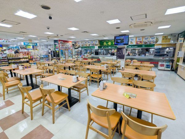 長者原SA(上り線)はテーブル・カウンター席共に席数が多く、おひとり様から家族連れまで、さまざまなシーンで利用しやすい空間でした。