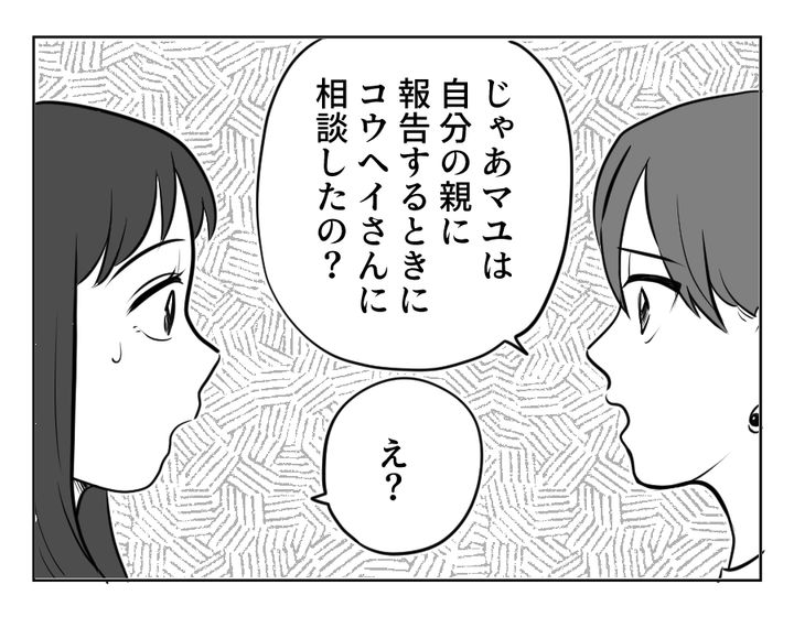 私(マユ)は、夫のコウヘイと2人暮らし。もうすぐ妊娠7ヶ月です。先日、ウチの両親に妊娠をようやく報告しました。するとその数日後に、義両親から「おめでとう!」との連絡が。私は義両親にはもっと後で報告するつもりでした。私が夫になぜ勝手に妊娠を伝えたのか詰めよると、私が実両親に報告したからいいと思ったと夫は言います。私が妊娠報告に慎重なのは、以前、流産を経験したから。そのときの義両親の言葉が私を追い詰めていったのです。勝手に報告した夫に対しても嫌悪感を抱いてしまいます。しかし友人は「実両親に妊娠の報告をするときにコウヘイさんに相談したの?」と聞いてきて……?