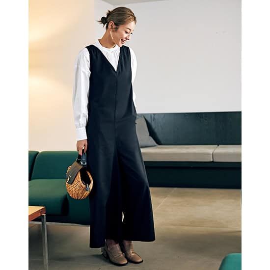 3. 動きやすくてほんのり甘い!大人の理想の【黒パンツ・スカート・オールインワン】