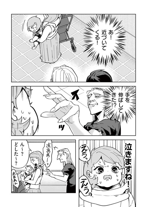 3. 「ママさん、この場を離れて!!」背後から赤ちゃんに迫る不審な手。俺が全力で泣き叫ぶと…!?/赤ちゃんに転生した話+80