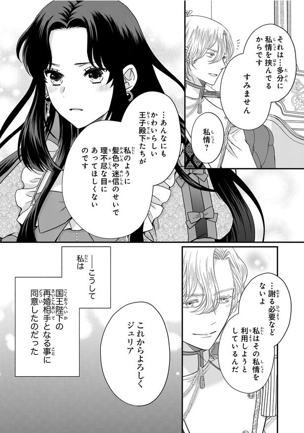 悪人に多い黒髪に生まれたことで、“悪魔”と呼ばれ迫害されてきたジュリア。それゆえ膨大な魔力の持主であることを隠して暮らしていたが、ある日突然、国王の再婚相手に選ばれる。しかも、いきなり双子王子の継母になることに…!? 断るつもりが、天使のように愛らしい王子たちにメロメロ! ところが、「不吉な双子」という迷信と、魔力がないせいで双子王子たちの行く末は超絶前途多難だった…。不当な差別を受けるふたりに、自らの境遇が重なってみえたジュリアは、継母として彼らを守り育てる覚悟を決め!? 嫌われ悪女×天使な双子王子の家族愛溢れる子育てファンタジー『双子王子の継母になりまして~嫌われ悪女ですが、そんなことより義息子たちが可愛すぎて困ります~』をお楽しみください。