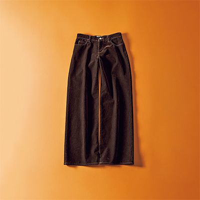 フロッキーデニム/OSLOW(フィルム) ベルベットのように起毛するフロッキー加工をほどこした特別感のある1本。質感が生きるスラックスのように端正なストレートシルエットで、美脚も十分。