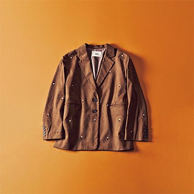 ジャケット/FURFUR(FURFUR ルミネ新宿2店) 散らばった小粒の刺しゅうのおかげで紳士なムードにならず、愛らしく羽織れるデザイン。肩パッドのようなハリを持つ、スエード調のフォーマルな形。