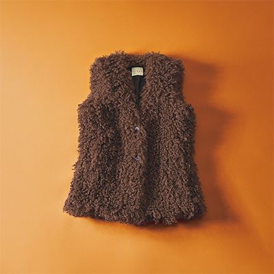 ボアベスト/チノ(モールド) 小顔や華奢見え効果もねらえるようなもこもことしたボリューム感。しっかりとお尻が隠れる長さがあり。アームホールは意外と広めで重ね着も容易。