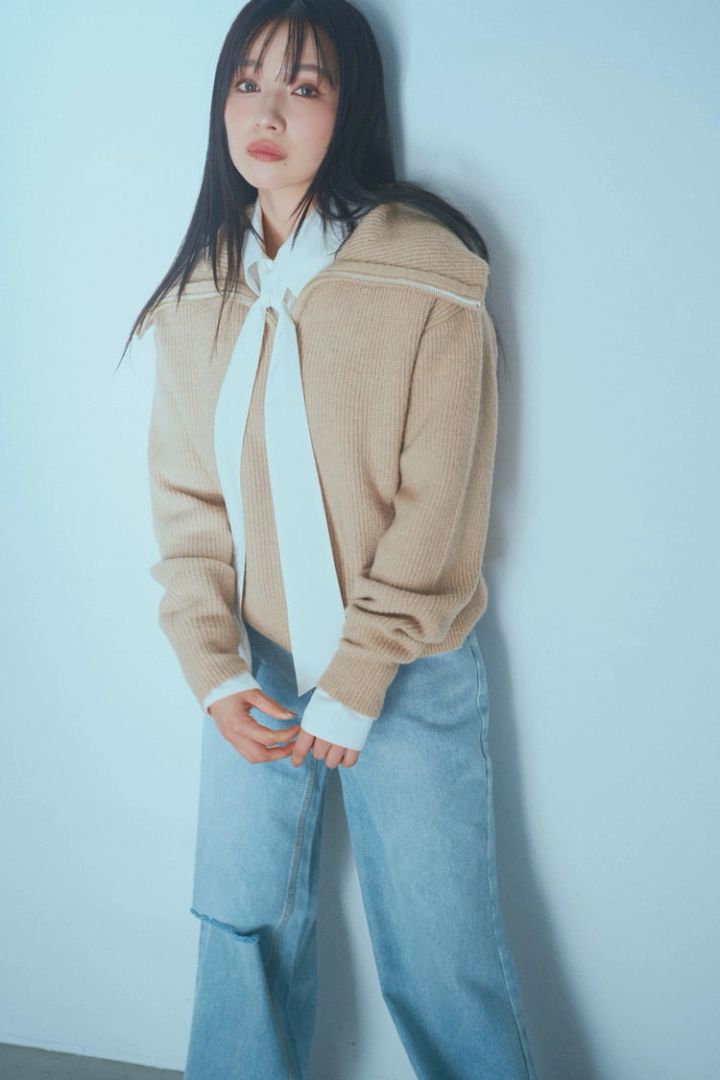 ニットプルオーバー 16,500円/アプワイザー・リッシェ ボウタイシャツ 8,800円/rienda(バロックジャパンリミテッド)デニムパンツ 5,990円/NADIA FLORES EN EL CORAZON