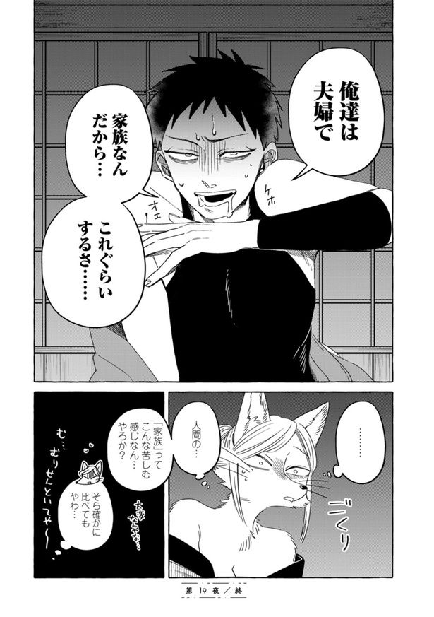 女妖狐が語る家族の温かな思い出。一方、男は家族に嫌悪感を抱く。ふたりは夫婦を続けられる?/狐面夫婦3⑭