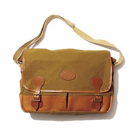 レザーパイピングキャンバスバッグ(28×57×11.5) 55,000円/COTSWOLD AQUARIUS(メイデン・カンパニー) レトロな味わいがある、体をおおうほど大きなフィッシングバッグ。