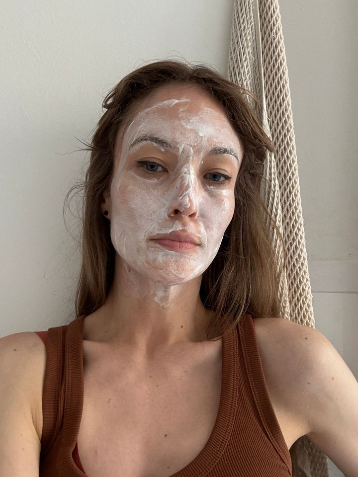 「美容は自分自身への愛の行為。虚栄心ではなく、自分をねぎらい、休ませ、笑い、考えること。心身のバランスを重視していて、血液検査に基づいて自然療法士が処方するサプリメントを取り、精製された砂糖は食べません。ただし、ひとかけのチョコレートと週末のワインは心を保つ栄養!」