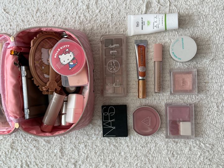 「ポーチには日焼け止め、コンシーラー、イニスフリーのパウダーが必須!」