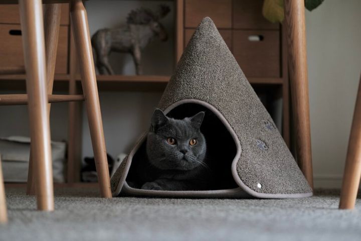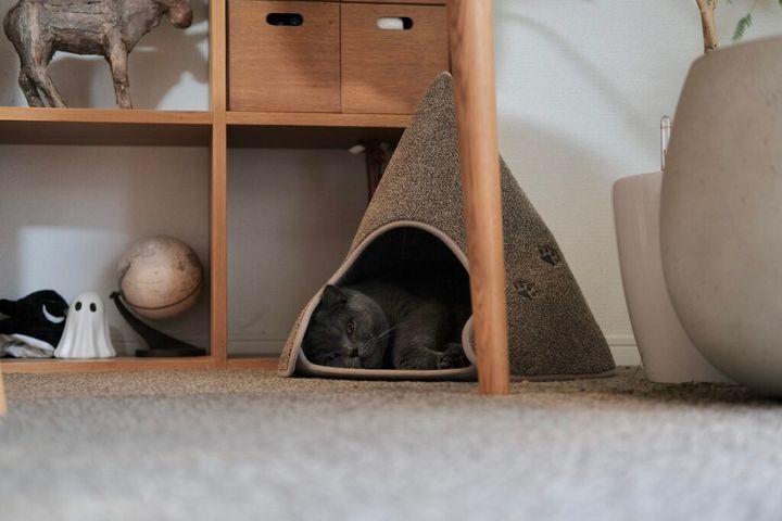 中で寝そべったり、丸まったり。こもれる場所って、安心するんですよね。人間界でも流行ってる、「ヌック」みたいな感じです。