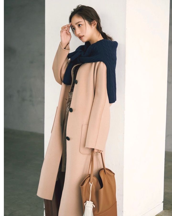 マフラー代わりにニット?ロングコートの着こなし更新テク
