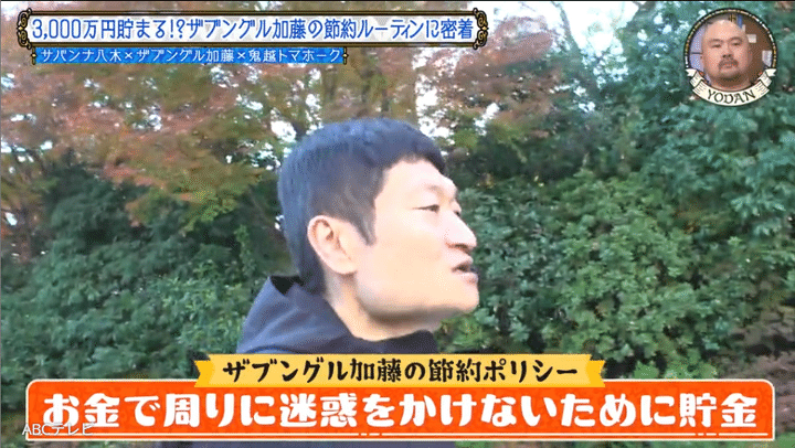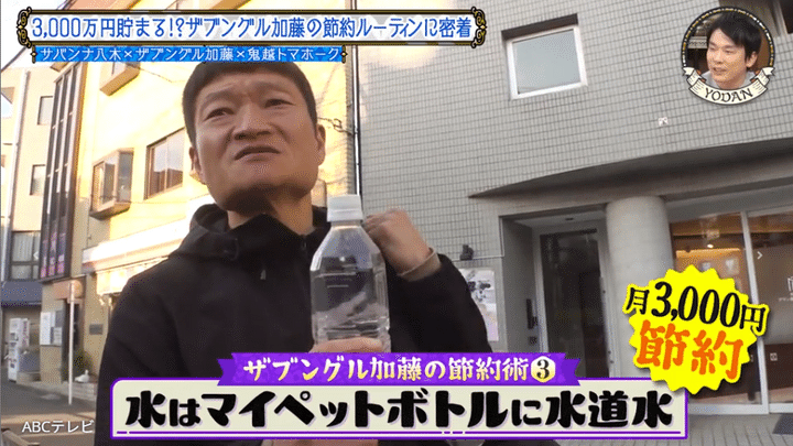 なお、このザブングル加藤の節約術は、1月28日に放送されたバラエティ番組「これ余談なんですけど・・・」で明かされた。