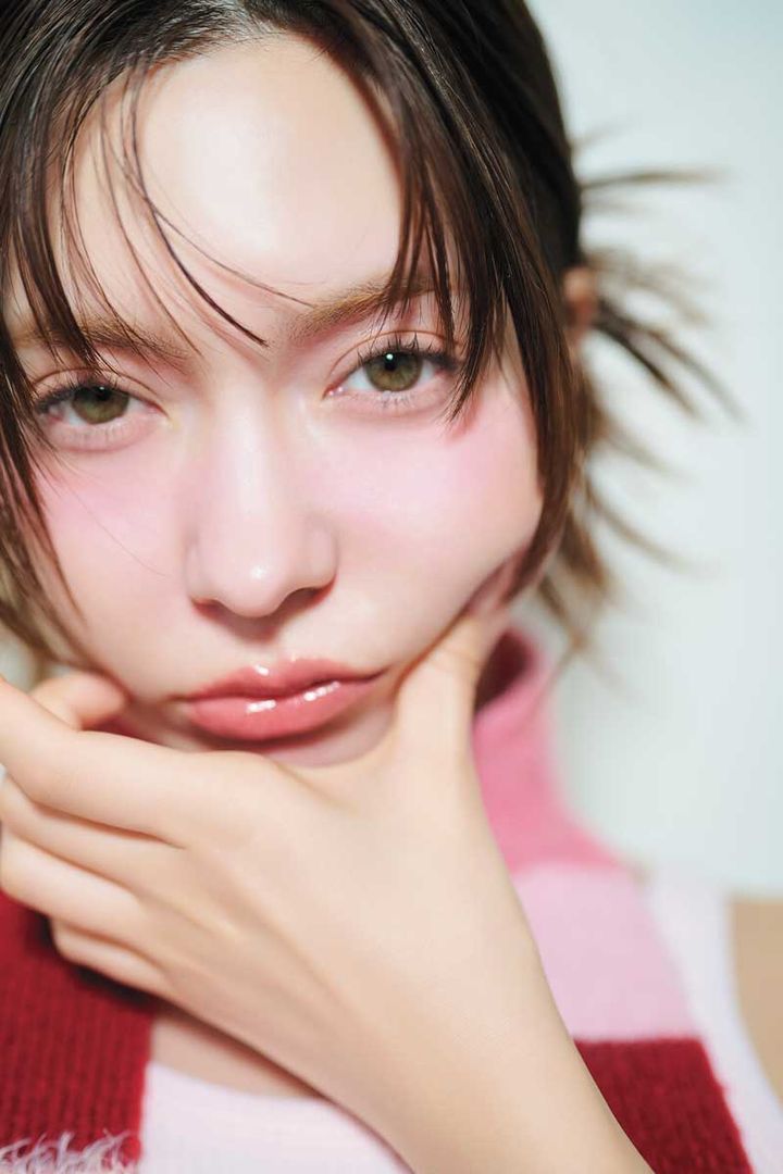 ヘアメイク 河嶋 希 大胆なツヤと潤いむっちりな唇、ピュアなミルキーピンクが可愛すぎる。縦ジワをカモフラージュしてくれるのもありがたい。