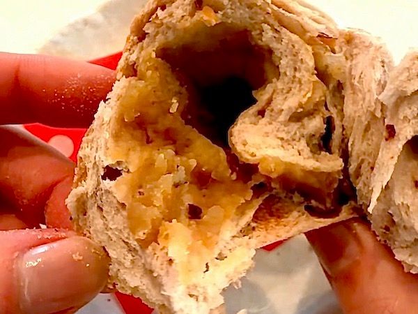 生地は確かに、ぎゅっと詰まったしっかりした食べ応えです。中には甘い栗きんとんと甘露煮が入っていて、噛めば噛むほどに甘みが口いっぱいに広がります。ひとつ食べたら満腹感ありますよ!!