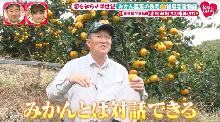 【Tver】恋を知らずに48年……みかん農家の長男が初めての告白とプロポーズ、そしてキス……!
