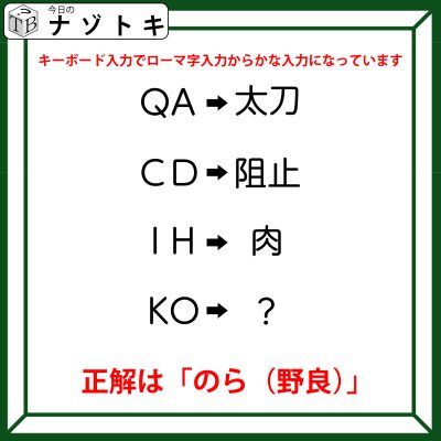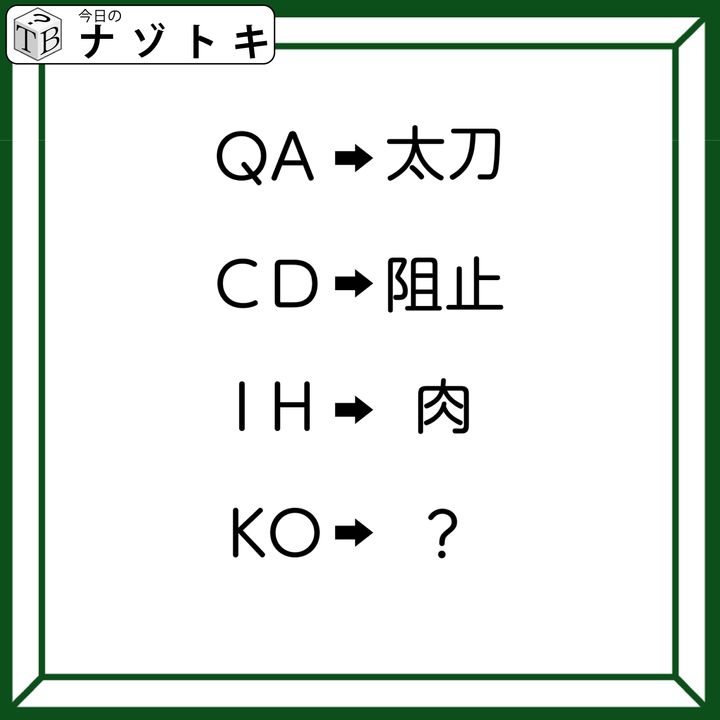 クイズです!「QA→太刀、CD→阻止。そのとき、KOは何になる?」変換の法則を考えましょう【難易度LV3.・中辛】