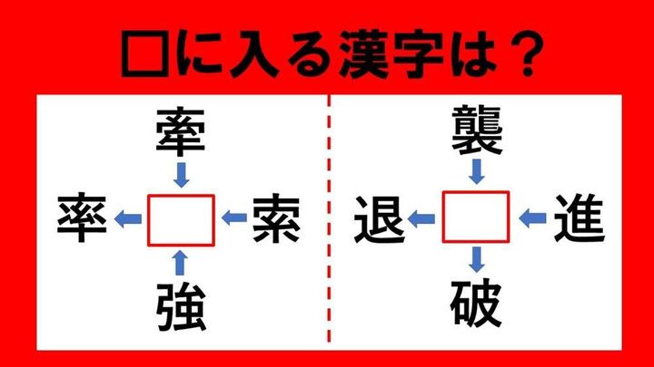 【漢字パズル】牽□、□率、強□、索□、□に入る漢字はなんでしょう?