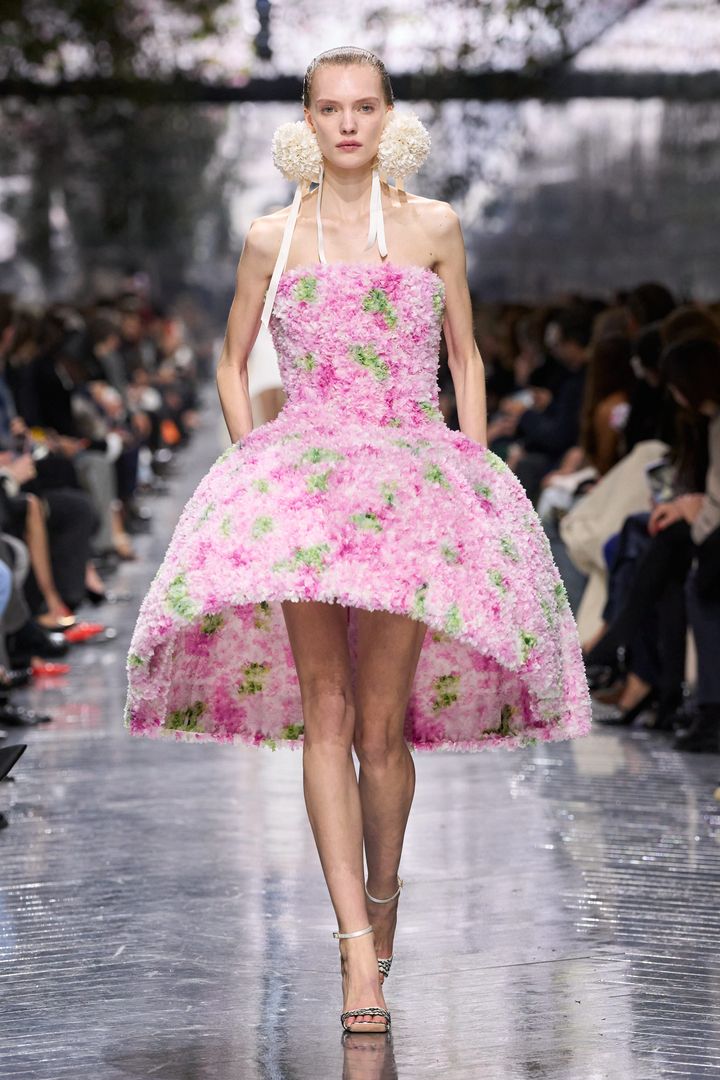 ジョナサン・アンダーソンは「ディオール」アーティスティック ディレクターに就任してわずか8カ月の間に、すでに5つのコレクションを世に送り出してきた。そして2026年1月26日(現地時間)、彼にとって初となるオートクチュール・コレクションを、パリのロダン美術館で発表した。1週間前に2026-27年秋冬メンズ・コレクションを披露したばかりの同会場には、この日、無数のシクラメンの花が咲き誇っていた——足元ではなく、天井に。
