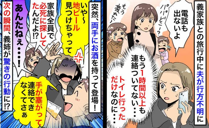 3. 家族旅行中、夫が1時間以上も音信不通に「いやぁトイレの帰りに地ビール見つけて!」次の瞬間、義姉が