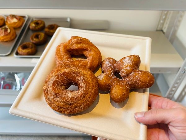 写真右側から時計回り【米粉ドーナツ(シュガー)(星の形のドーナツ)】¥350/【シナモンオールドファッション】¥350/【シナモンフレンチクルーラー】¥300