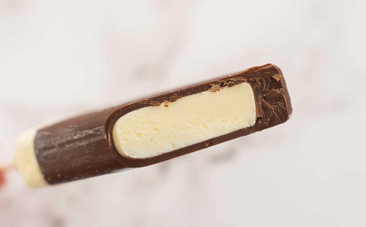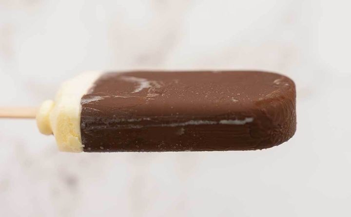 バニラアイスのほとんどがチョコでコーティングされています。