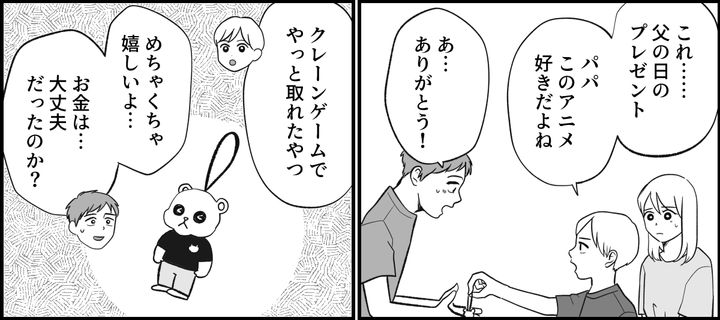 ハヤトは夫の財布からお金を盗み、「父の日のプレゼントを買う」と言いながら遊びに行っていたのでした。