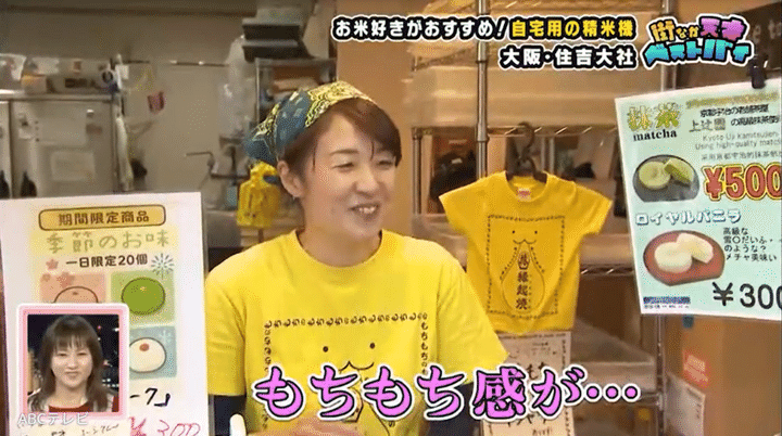 “イケボなエンドレスもちもちソング”をBGMに、天才ピアニストは縁起焼の女性スタッフにベストバイをインタビュー。白米が大好きな女性スタッフは、普段米を「玄米の状態で買って、家で食べる分だけ精米している」のだとか。彼女のベストバイは、ミキサーほどの大きさの小型精米機! 精米された米よりも優れている点について彼女は、「やっぱりお米のツヤとか……もちもち感が」と、歌につられて笑いながら教えてくれました!