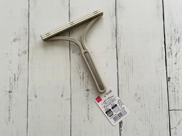 使い勝手のよさで注目したいのがダイソーの「T字リントブラシ」。衣類はもちろん、カーペットやラグにも使える万能タイプ。毛玉がごっそり取れるのが魅力です。