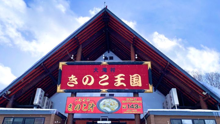 先日、取材で新千歳空港からニセコ方面へ車移動中、気になるスポットを発見しました。その名も「きのこ王国」。インパクトありすぎる看板を見て思わず「あそこは何なんですか!?」と運転手さんにたずねた筆者。