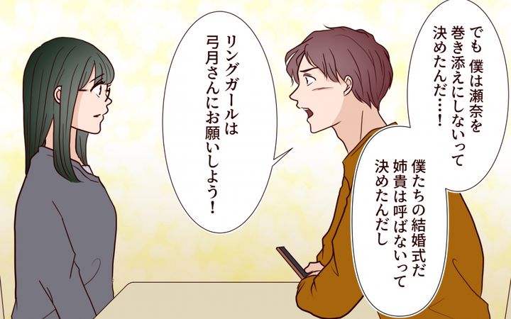 リングガールにこだわる義姉が妻を侮辱するようになり、夫は姉を結婚式に呼ばないことに決める。しかし義姉は思い通りにならないことに怒りを爆発させ、妻の友人にまで嫌がらせとも取れるDMを送りつける。こうした義姉の暴挙に妻は自分が我慢すればいいのかと思い悩むが…。