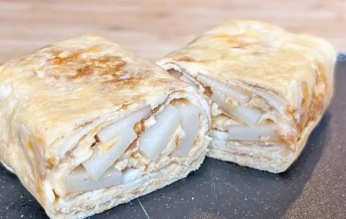 いつもの玉子焼きよりも重量感があります!餅の弾力も相まって、食べ応え抜群。