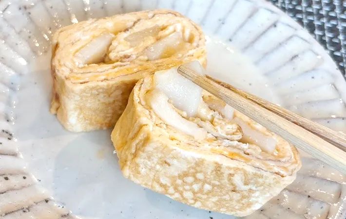 餅を切って入れるだけ!もちもちの玉子焼き