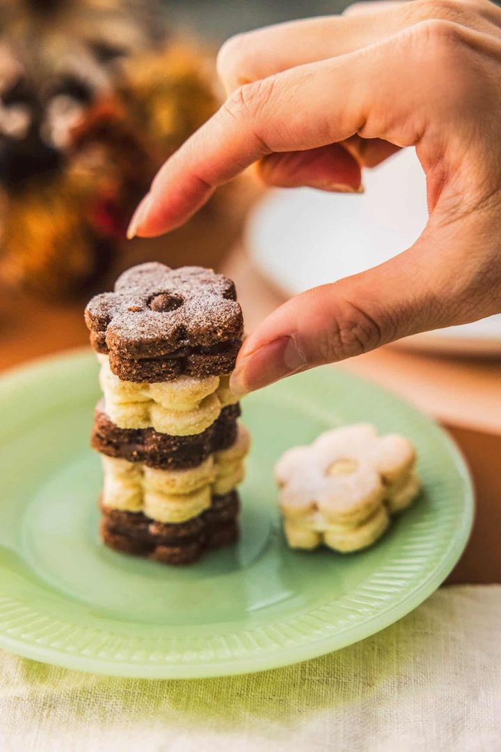 小麦粉や卵は一切使わず、アーモンドプードルの風味を生かしたクッキーでチョコレートガナッシュをサンド。爽やかなレモン&やさしい甘みの「レモンホワイトチョコレート」と、スパイス香るカカオが濃厚な「シナモンチョコレート」、2種の異なるチョコレートを楽しめる詰め合わせです。サクほろ食感がクセになり、ついつい手を伸ばしたくなるやさしい味わい。自分へのご褒美はもちろん大切な人ともシェアして。