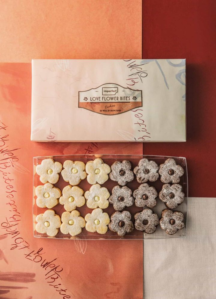 世界の食と農を取り巻く社会課題の解決を目指すimperfect (インパーフェクト)から、バレンタイン&ホワイトデーに向けて「LOVE FLOWER BITES(ラブフラワーバイツ)」が新登場しました。今年のテーマは“LOVE OURSELVES(わたしたちを愛そう)”。環境保全に配慮して生産されたカカオやアーモンドを使用した、アシンメトリーな花型が可愛らしいチョコレートクッキーサンドです。