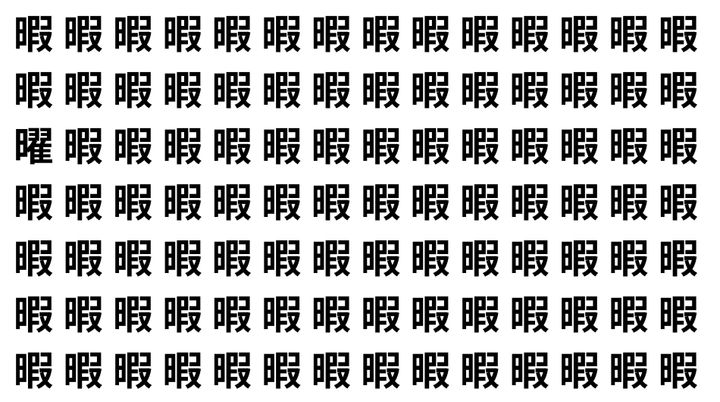 たくさんの「暇」の中に、よく似た別の漢字が1文字だけ隠れています。