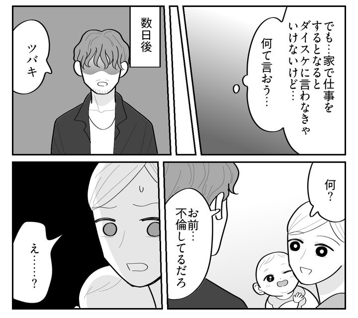 しかしその数日後……。帰宅したダイスケはいきなり「不倫してるだろ」と言ってきたのです。
