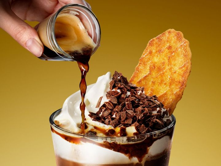 今回お届けするのは、エスプレッソとチョコレート風味が芳醇に織りなす深みと甘さのマリアージュを楽しめる“極上のアフォガートフラペチーノ体験”。ホイップクリームと口どけのよい“カカオシェイブ”をトッピングすることで、よりリッチな味わいに。エスプレッソが溶け合って、まるでアフォガートを思わせるような体験へと誘います。