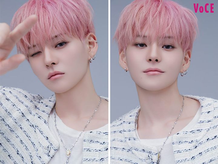 DOYOUNG「へぇ〜、僕も試してみようかな。僕がやっているのは、2日に1回、ブライトニング効果のあるパックをすること。あと、撮影の前に “かぼちゃエキス”を飲むのもルーティンのひとつ。かぼちゃエキスは韓国ではむくみに効果があると言われていて。最近飲み始めたので、初出し情報です。VOCE読者の皆さんにだけこっそり教えるので、あまり広めないでください(笑)」