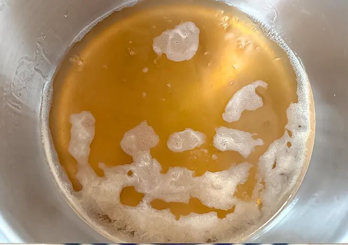 まず、鍋にほうじ茶と和風だしの素を入れて中火にかけ、出汁を作っていきます。